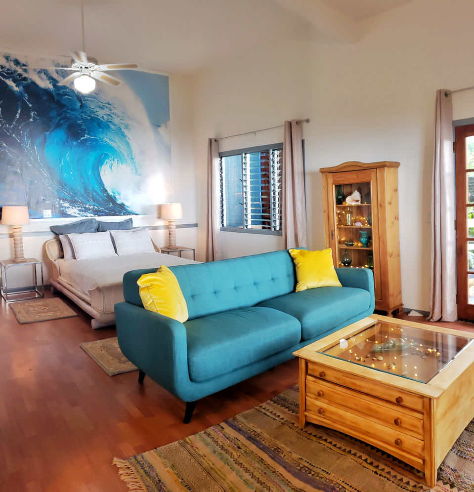 Complimentary tea and coffee are just two of many delights awaiting your palate. Pick fresh papaya right off your deck or stroll the acre of land for ripe avocados, bananas, guavas, lychee and starfruit.